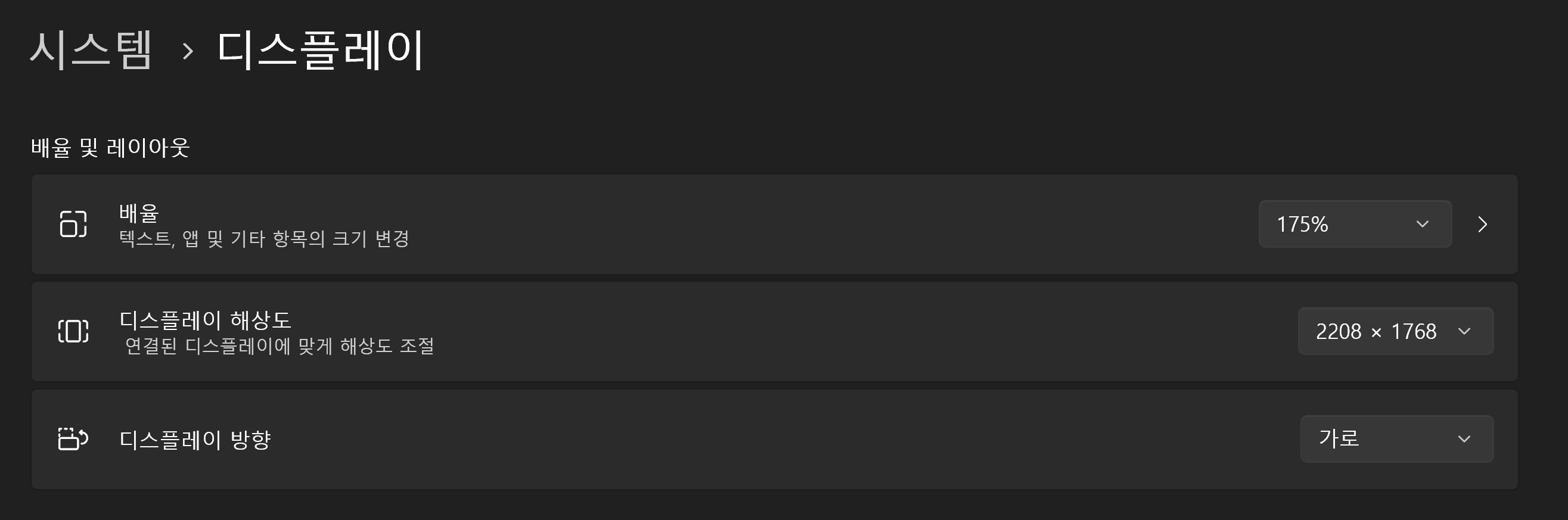 저의 경우, 갤럭시 폴드 3을 연결했더니 800 x 600의 해상도로 지정이 기본으로 되어있었습니다. 이 해상도를 변경하여 조금 더 듀얼 모니터스럽게 변경하였습니다.