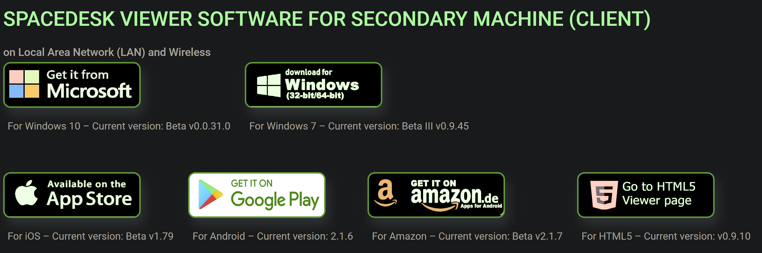 SpacedDesk 공식 홈페이지에서 쉽게 내려받아 설치할 수 있습니다. 현재 사용 중인 운영체제에 맞게 설치합니다.
