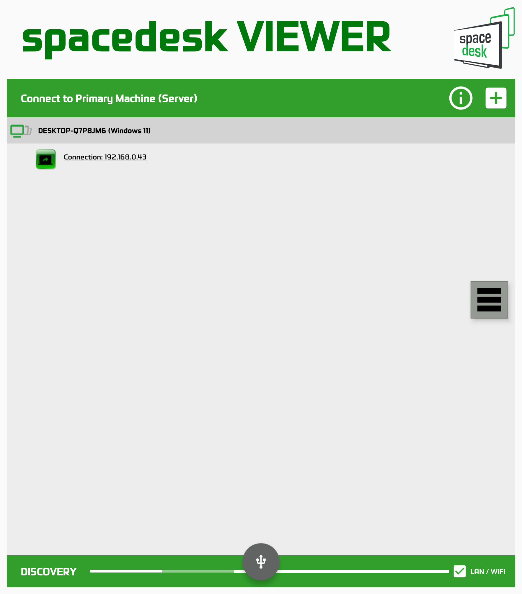 Client 설정은 더 간단했습니다. 심지어 앱 설치만 진행하면 모든 것이 끝났습니다. 저의 경우에는 동일한 네트워크에 있었기 때문에 자동으로 검색이 되는 것이 확인되었습니다. 다른 네트워크에 있는 Server에 접속하길 원하신다면 +버튼을 눌러 직접 IP를 작성하시고 추가하시면 됩니다.